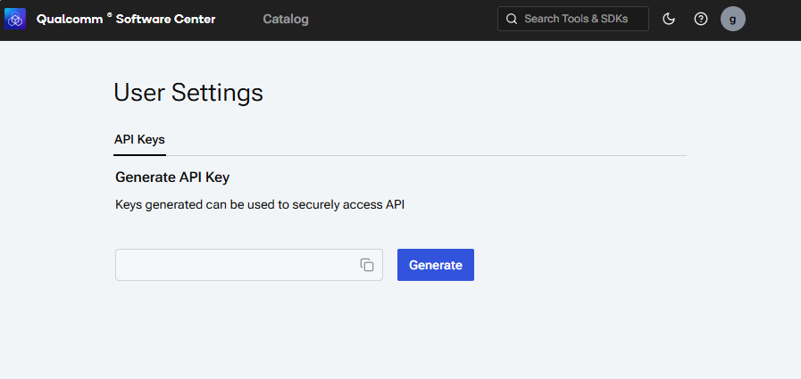 Once in the API Keys section, click on the "Generate" button to initiate the creation of a new API Key.
